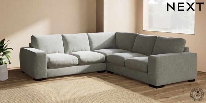 7.2.10 Houghton Deep Relaxed Sit Medium Corner Sofa - Universal Chunky Chenille Light Grey Large Square Angle - Dark | Made Click here to use our website with more accessibility support, for example screen readers