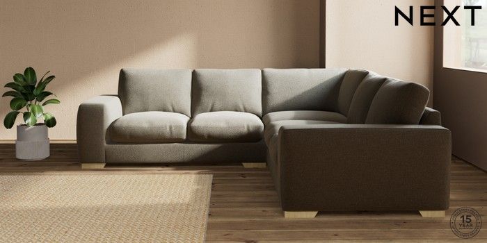 7.2.10 Houghton Deep Relaxed Sit Medium Corner Sofa - Universal Chunky Marl Light Olive Green Large Square Angle - Light | Made Click here to use our website with more accessibility support, for example screen readers