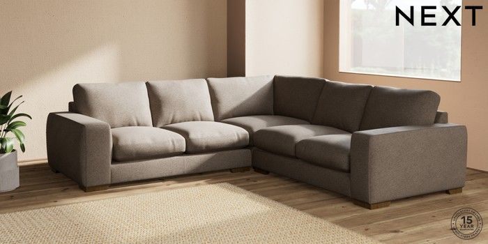 7.2.10 Houghton Deep Relaxed Sit Medium Corner Sofa - Universal Chunky Weave Dark Natural Large Square Angle - Mid | Made Click here to use our website with more accessibility support, for example screen readers