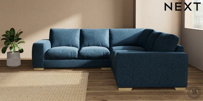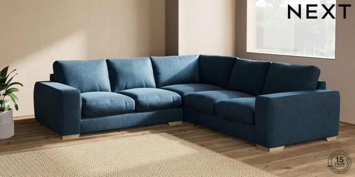 7.2.10 Houghton Deep Relaxed Sit Medium Corner Sofa - Universal Cotswold Chenille Dark Blue Large Square Angle - Light | Made Click here to use our website with more accessibility support, for example screen readers