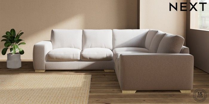 7.2.10 Houghton Deep Relaxed Sit Medium Corner Sofa - Universal Cotswold Chenille Oyster Large Square Angle - Light | Made Click here to use our website with more accessibility support, for example screen readers