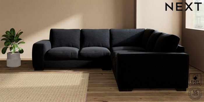 7.2.10 Houghton Deep Relaxed Sit Medium Corner Sofa - Universal Fine Chenille Easy Clean Black Large Square Angle - Dark | Made Click here to use our website with more accessibility support, for example screen readers