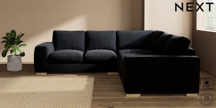 7.2.10 Houghton Deep Relaxed Sit Medium Corner Sofa - Universal Fine Chenille Easy Clean Black Large Square Angle - Light | Made Click here to use our website with more accessibility support, for example screen readers