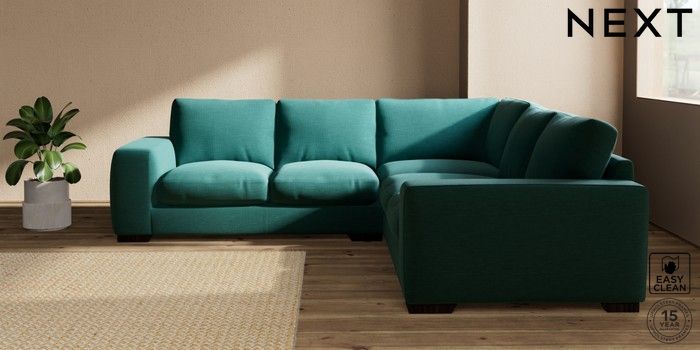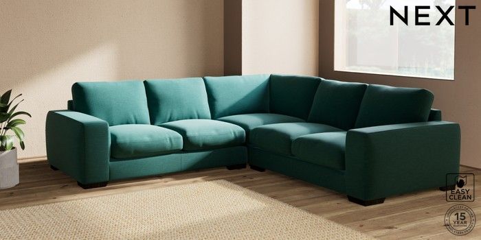 7.2.10 Houghton Deep Relaxed Sit Medium Corner Sofa - Universal Fine Chenille Easy Clean Dark Juniper Green Large Square Angle - Dark | Made Click here to use our website with more accessibility support, for example screen readers
