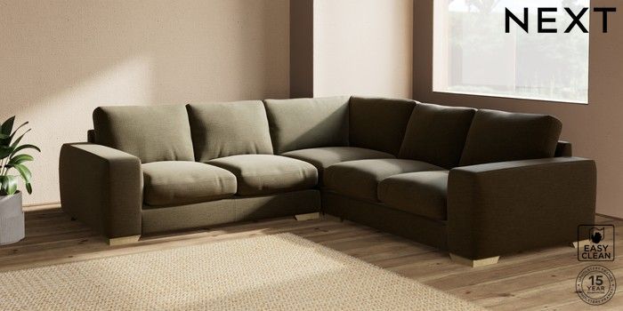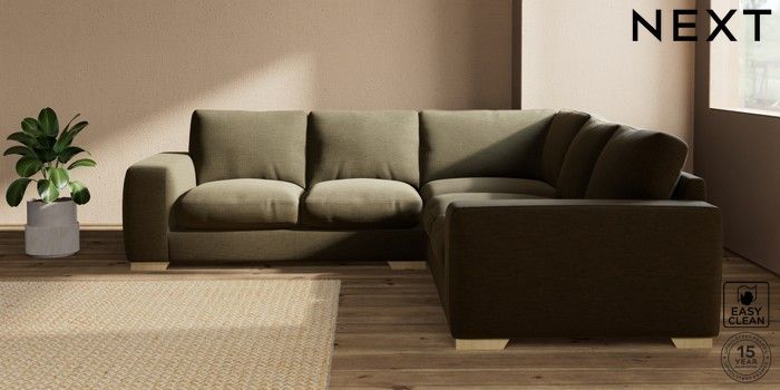 7.2.10 Houghton Deep Relaxed Sit Medium Corner Sofa - Universal Fine Chenille Easy Clean Dark Moss Green Large Square Angle - Light | Made Click here to use our website with more accessibility support, for example screen readers
