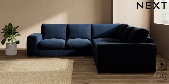 7.2.10 Houghton Deep Relaxed Sit Medium Corner Sofa - Universal Fine Chenille Easy Clean Dark Navy Blue Large Square Angle - Mid | Made Click here to use our website with more accessibility support, for example screen readers