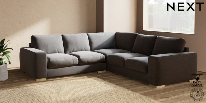 7.2.10 Houghton Deep Relaxed Sit Medium Corner Sofa - Universal Fine Chenille Easy Clean Dark Smoke Grey Large Square Angle - Light | Made Click here to use our website with more accessibility support, for example screen readers