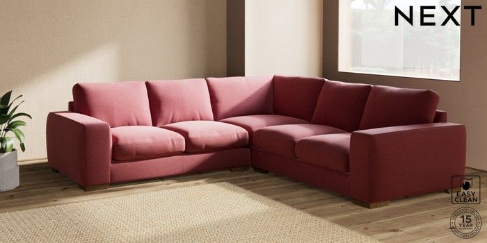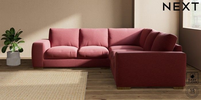 7.2.10 Houghton Deep Relaxed Sit Medium Corner Sofa - Universal Fine Chenille Easy Clean Mid Pink Large Square Angle - Mid | Made Click here to use our website with more accessibility support, for example screen readers