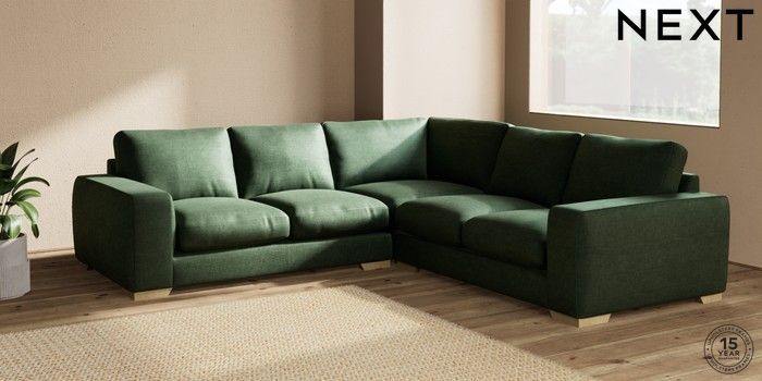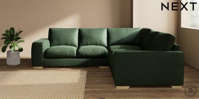 7.2.10 Houghton Deep Relaxed Sit Medium Corner Sofa - Universal Luxe Chenille Dark Green Large Square Angle - Light | Made Click here to use our website with more accessibility support, for example screen readers