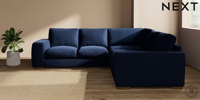 7.2.10 Houghton Deep Relaxed Sit Medium Corner Sofa - Universal Luxe Chenille Navy Blue Large Square Angle - Mid | Made Click here to use our website with more accessibility support, for example screen readers