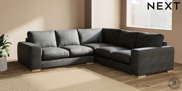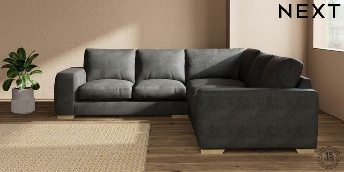 7.2.10 Houghton Deep Relaxed Sit Medium Corner Sofa - Universal Monza Faux Leather Easy Clean Dark Grey Large Square Angle - Light | Made Click here to use our website with more accessibility support, for example screen readers