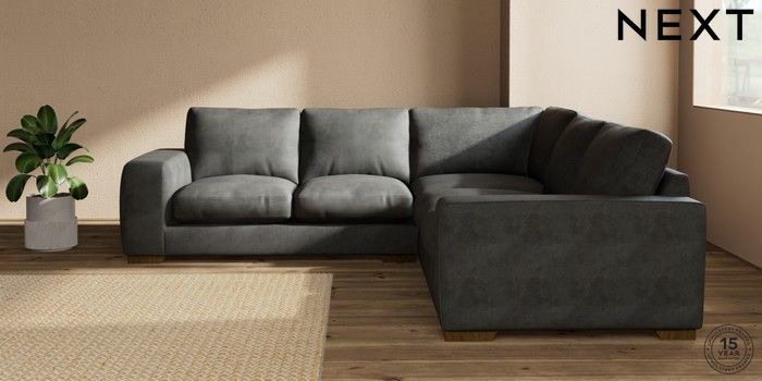 7.2.10 Houghton Deep Relaxed Sit Medium Corner Sofa - Universal Monza Faux Leather Easy Clean Dark Grey Large Square Angle - Mid | Made Click here to use our website with more accessibility support, for example screen readers
