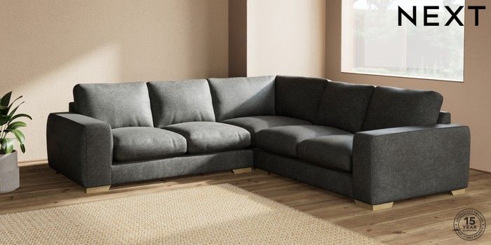 7.2.10 Houghton Deep Relaxed Sit Medium Corner Sofa - Universal Plush Chenille Dark Grey Large Square Angle - Light | Made Click here to use our website with more accessibility support, for example screen readers