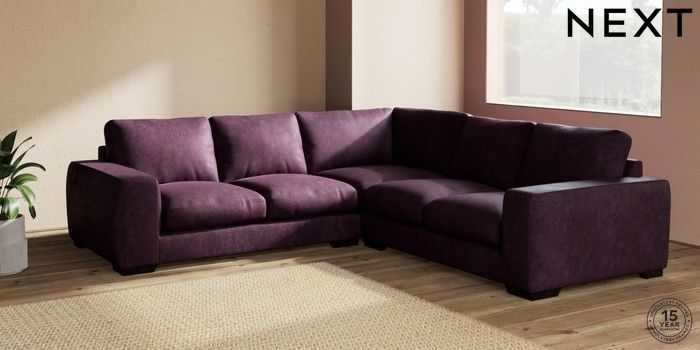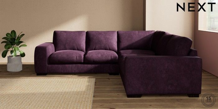 7.2.10 Houghton Deep Relaxed Sit Medium Corner Sofa - Universal Plush Chenille Dark Plum Purple Large Square Angle - Dark | Made Click here to use our website with more accessibility support, for example screen readers