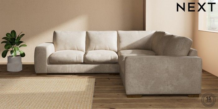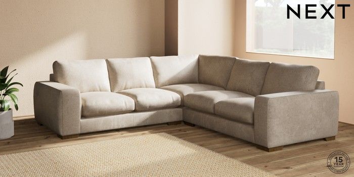 7.2.10 Houghton Deep Relaxed Sit Medium Corner Sofa - Universal Plush Chenille Light Natural Large Square Angle - Mid | Made Click here to use our website with more accessibility support, for example screen readers