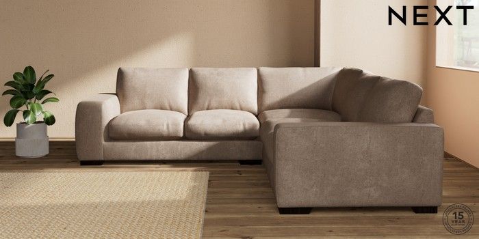 7.2.10 Houghton Deep Relaxed Sit Medium Corner Sofa - Universal Plush Chenille Mid Natural Large Square Angle - Dark | Made Click here to use our website with more accessibility support, for example screen readers