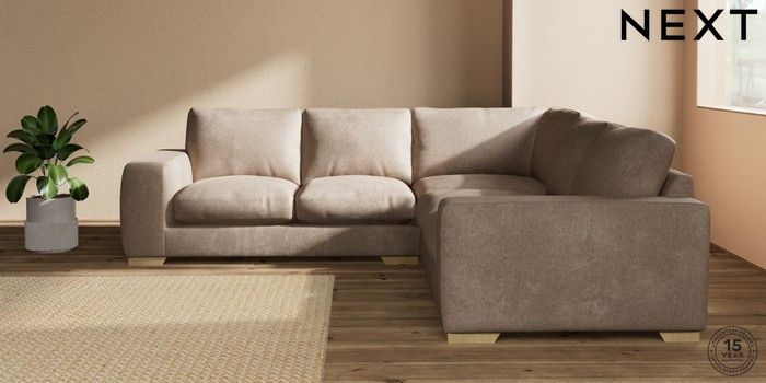 7.2.10 Houghton Deep Relaxed Sit Medium Corner Sofa - Universal Plush Chenille Mid Natural Large Square Angle - Light | Made Click here to use our website with more accessibility support, for example screen readers