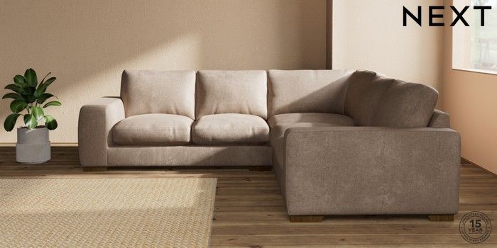 7.2.10 Houghton Deep Relaxed Sit Medium Corner Sofa - Universal Plush Chenille Mid Natural Large Square Angle - Mid | Made Click here to use our website with more accessibility support, for example screen readers
