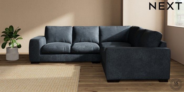 7.2.10 Houghton Deep Relaxed Sit Medium Corner Sofa - Universal Plush Chenille Slate Blue Large Square Angle - Dark | Made Click here to use our website with more accessibility support, for example screen readers