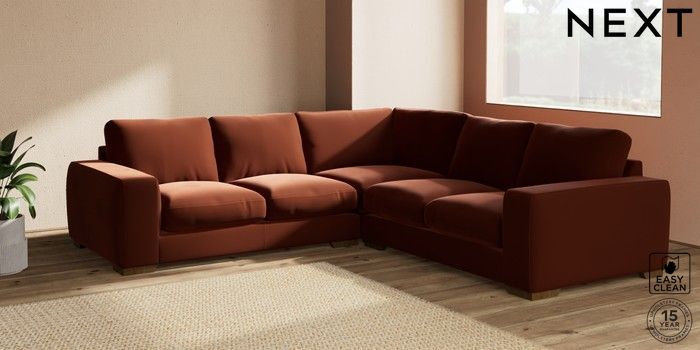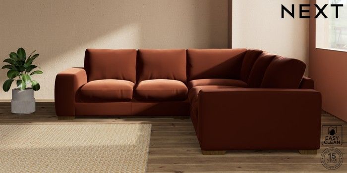 7.2.10 Houghton Deep Relaxed Sit Medium Corner Sofa - Universal Plush Velvet Easy Clean Ginger Orange Large Square Angle - Mid | Made Click here to use our website with more accessibility support, for example screen readers