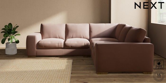 7.2.10 Houghton Deep Relaxed Sit Medium Corner Sofa - Universal Plush Velvet Easy Clean Mid Natural Large Square Angle - Mid | Made Click here to use our website with more accessibility support, for example screen readers