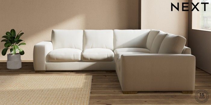 7.2.10 Houghton Deep Relaxed Sit Medium Corner Sofa - Universal Relaxed Linen Look Oyster Large Square Angle - Mid | Made Click here to use our website with more accessibility support, for example screen readers