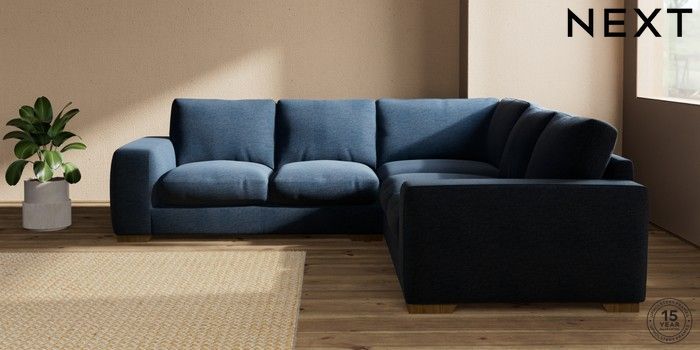 7.2.10 Houghton Deep Relaxed Sit Medium Corner Sofa - Universal Ripple Chenille Dark Blue Large Square Angle - Mid | Made Click here to use our website with more accessibility support, for example screen readers