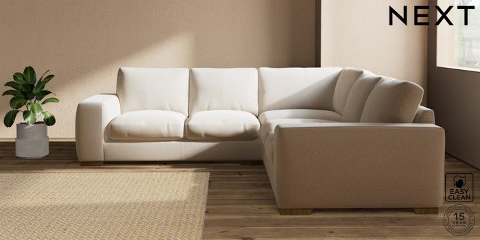 7.2.10 Houghton Deep Relaxed Sit Medium Corner Sofa - Universal Tweedy Blend Easy Clean Oyster Large Square Angle - Mid | Made Click here to use our website with more accessibility support, for example screen readers