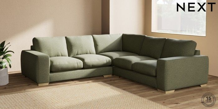 7.2.10 Houghton Deep Relaxed Sit Medium Corner Sofa - Universal Tweedy Chenille Mid Moss Green Large Square Angle - Light | Made Click here to use our website with more accessibility support, for example screen readers