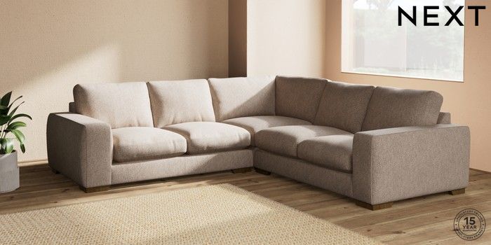 7.2.10 Houghton Deep Relaxed Sit Medium Corner Sofa - Universal Tweedy Chenille Mid Natural Large Square Angle - Mid | Made Click here to use our website with more accessibility support, for example screen readers