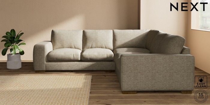 7.2.10 Houghton Deep Relaxed Sit Medium Corner Sofa - Universal Woven Chenille Easy Clean Mid Natural Large Square Angle - Mid | Made Click here to use our website with more accessibility support, for example screen readers