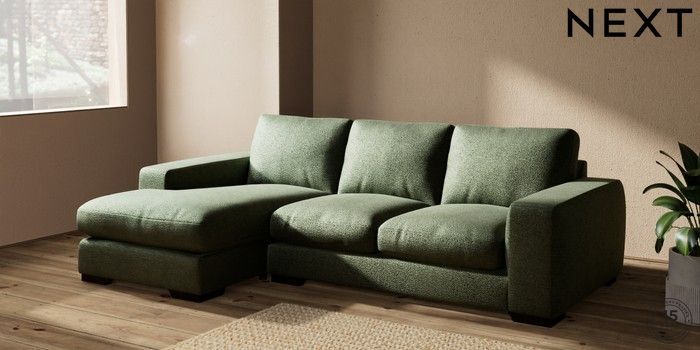 7.2.10 Houghton Deep Relaxed Sit Medium Sofa Chaise - Left Hand Boucle Chenille Dark Moss Green Large Square Angle - Dark | Made Click here to use our website with more accessibility support, for example screen readers