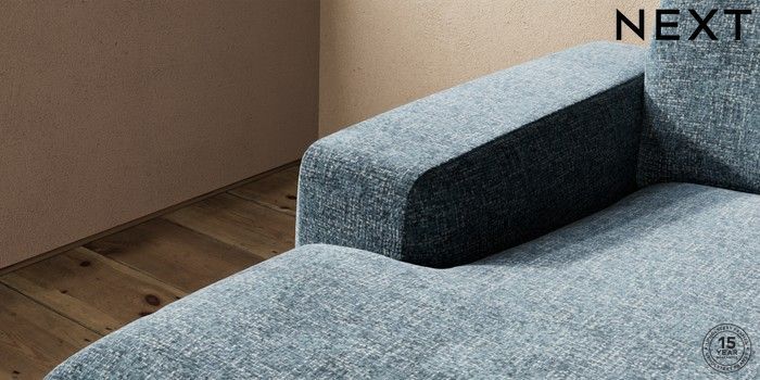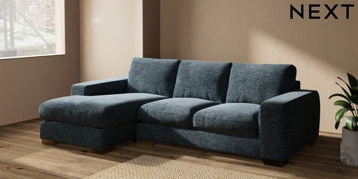 7.2.10 Houghton Deep Relaxed Sit Medium Sofa Chaise - Left Hand Chunky Chenille Dark Navy Blue Large Square Angle - Brushed Brass | Made Click here to use our website with more accessibility support, for example screen readers