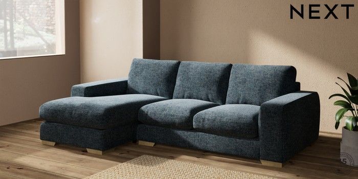 7.2.10 Houghton Deep Relaxed Sit Medium Sofa Chaise - Left Hand Chunky Chenille Dark Navy Blue Large Square Angle - Light | Made Click here to use our website with more accessibility support, for example screen readers