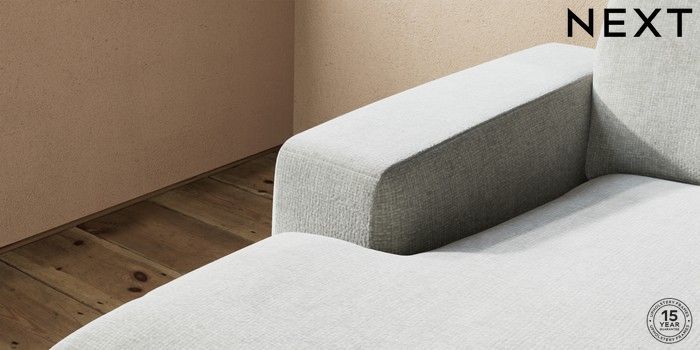7.2.10 Houghton Deep Relaxed Sit Medium Sofa Chaise - Left Hand Chunky Chenille Light Grey Large Square Angle - Light | Made Click here to use our website with more accessibility support, for example screen readers