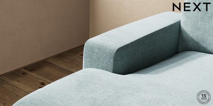 7.2.10 Houghton Deep Relaxed Sit Medium Sofa Chaise - Left Hand Chunky Chenille Light Teal Green Large Square Angle - Brushed Brass | Made Click here to use our website with more accessibility support, for example screen readers