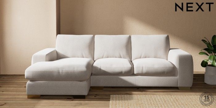 7.2.10 Houghton Deep Relaxed Sit Medium Sofa Chaise - Left Hand Chunky Chenille Oyster Large Square Angle - Brushed Brass | Made Click here to use our website with more accessibility support, for example screen readers