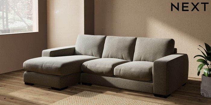 7.2.10 Houghton Deep Relaxed Sit Medium Sofa Chaise - Left Hand Chunky Marl Light Olive Green Large Square Angle - Dark | Made Click here to use our website with more accessibility support, for example screen readers