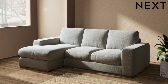7.2.10 Houghton Deep Relaxed Sit Medium Sofa Chaise - Left Hand Chunky Texture Dove Large Square Angle - Mid | Made Click here to use our website with more accessibility support, for example screen readers