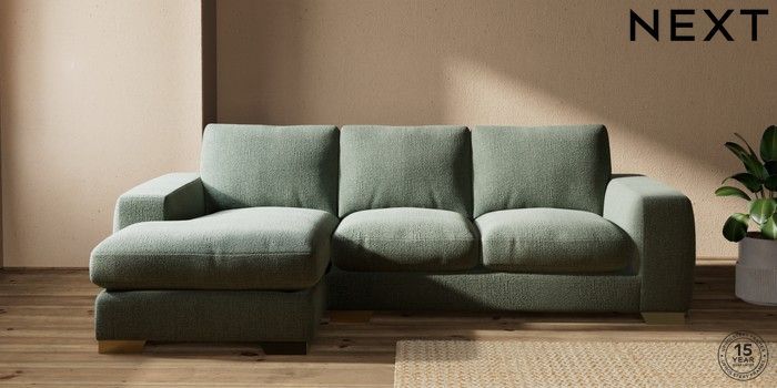 7.2.10 Houghton Deep Relaxed Sit Medium Sofa Chaise - Left Hand Chunky Texture Mid Forest Green Large Square Angle - Brushed Brass | Made Click here to use our website with more accessibility support, for example screen readers