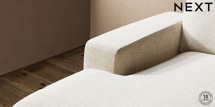 7.2.10 Houghton Deep Relaxed Sit Medium Sofa Chaise - Left Hand Chunky Weave Cream Large Square Angle - Chrome Metal | Made Click here to use our website with more accessibility support, for example screen readers