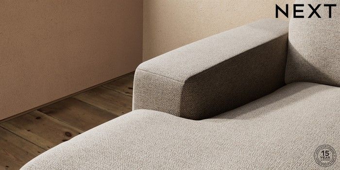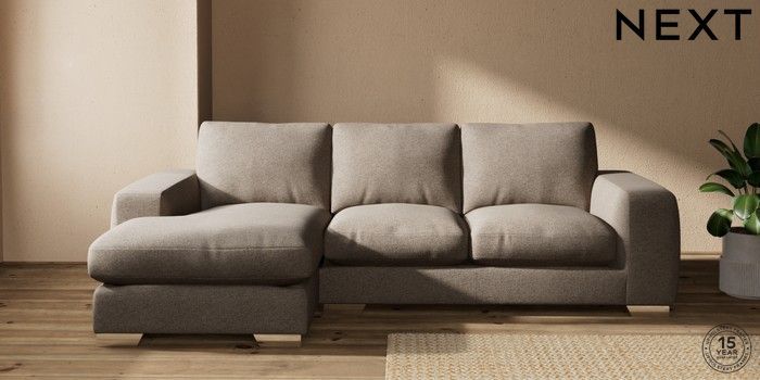 7.2.10 Houghton Deep Relaxed Sit Medium Sofa Chaise - Left Hand Chunky Weave Dark Natural Large Square Angle - Chrome Metal | Made Click here to use our website with more accessibility support, for example screen readers