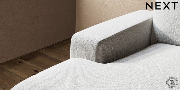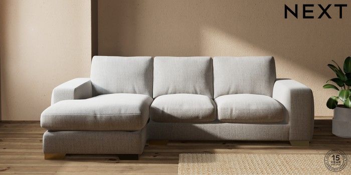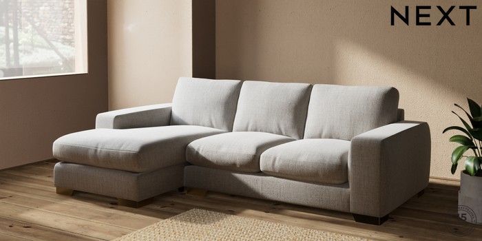 7.2.10 Houghton Deep Relaxed Sit Medium Sofa Chaise - Left Hand Chunky Weave Dove Grey Large Square Angle - Brushed Brass | Made Click here to use our website with more accessibility support, for example screen readers