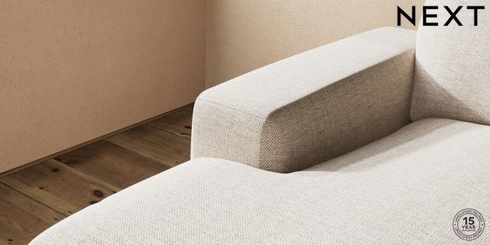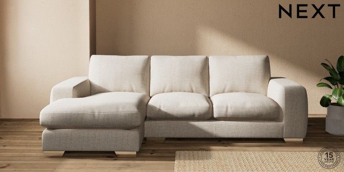 7.2.10 Houghton Deep Relaxed Sit Medium Sofa Chaise - Left Hand Chunky Weave Mid Natural Large Square Angle - Chrome Metal | Made Click here to use our website with more accessibility support, for example screen readers