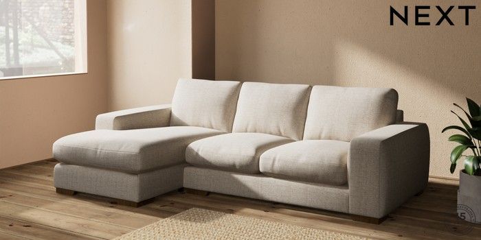 7.2.10 Houghton Deep Relaxed Sit Medium Sofa Chaise - Left Hand Chunky Weave Mid Natural Large Square Angle - Mid | Made Click here to use our website with more accessibility support, for example screen readers