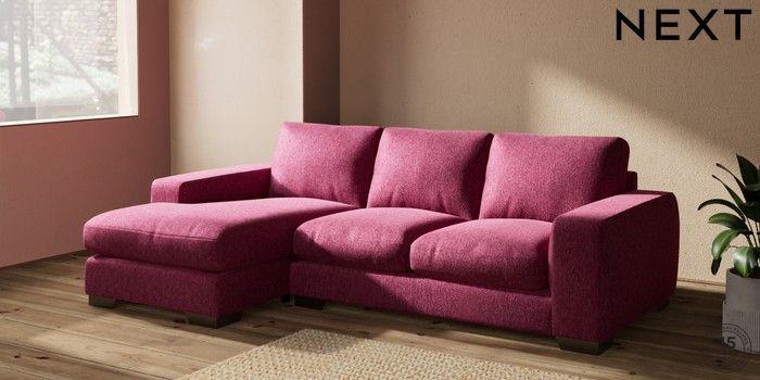 7.2.10 Houghton Deep Relaxed Sit Medium Sofa Chaise - Left Hand Cotswold Chenille Dark Raspberry Pink Large Square Angle - Gunmetal | Made Click here to use our website with more accessibility support, for example screen readers