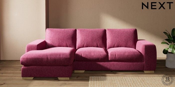 7.2.10 Houghton Deep Relaxed Sit Medium Sofa Chaise - Left Hand Cotswold Chenille Dark Raspberry Pink Large Square Angle - Light | Made Click here to use our website with more accessibility support, for example screen readers