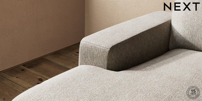 7.2.10 Houghton Deep Relaxed Sit Medium Sofa Chaise - Left Hand Cotswold Chenille Mid Mink Brown Large Square Angle - Brushed Brass | Made Click here to use our website with more accessibility support, for example screen readers