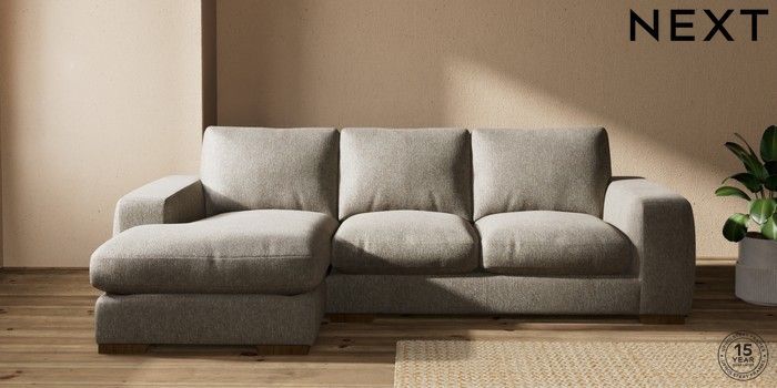 7.2.10 Houghton Deep Relaxed Sit Medium Sofa Chaise - Left Hand Cotswold Chenille Mid Mink Brown Large Square Angle - Mid | Made Click here to use our website with more accessibility support, for example screen readers