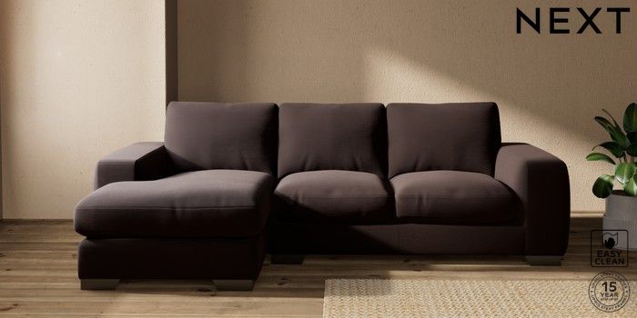 7.2.10 Houghton Deep Relaxed Sit Medium Sofa Chaise - Left Hand Fine Chenille Easy Clean Chocolate Brown Large Square Angle - Gunmetal | Made Click here to use our website with more accessibility support, for example screen readers